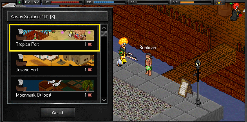 Travel to the Aeven Port. Talk to the Boatman and take the Aeven SeaLiner 101 to Tropica Port.
