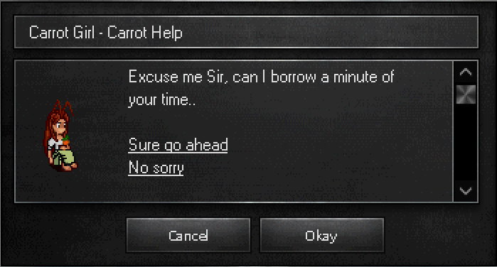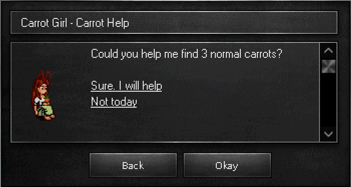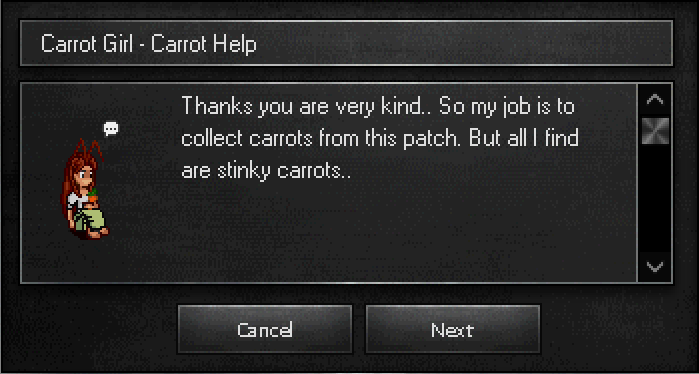 Carrot Girl explains that she can only find Stinky Carrots and asks you to bring her 3 normal Carrots.
