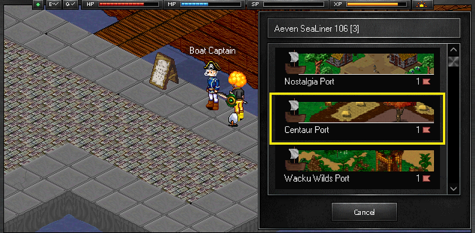 Head to Centaur Cita inside the Centaur Outhouse. From Aeven, go south to the Aeven Port and talk to the Boat Captain. Then select Centaur Port.