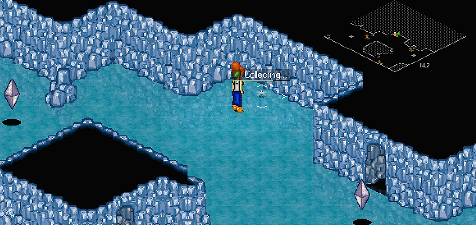 3.Gather 6 ice flowers around the ice caves. You will need 2 warmth items (hat, gloves, and/or Warm Robes) to avoid receiving damage from the cold every few seconds. If you've roamed around and gathered a few, you can step outside to heal before going back inside the ice caves.
