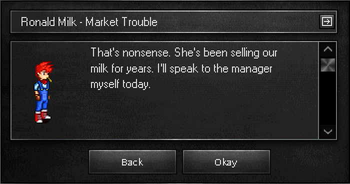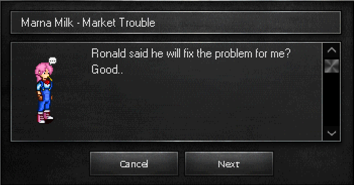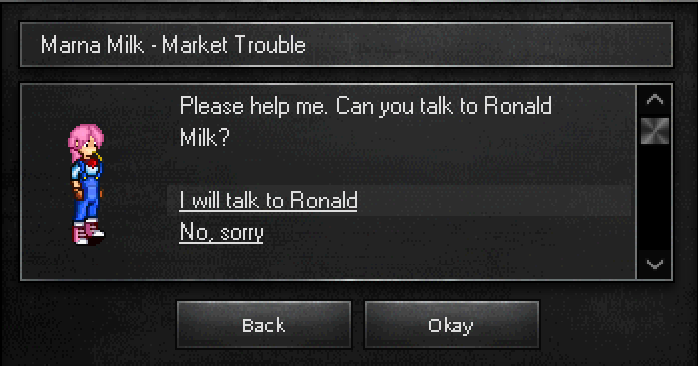 She will explain that she was kicked out of the market and ask you to speak with Ronald Milk inside the Milk Farm.