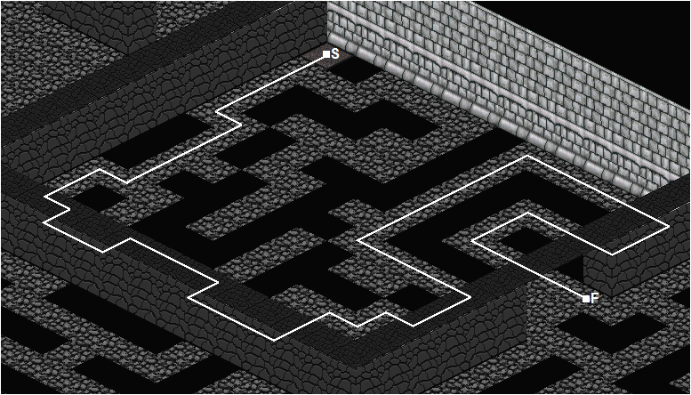 5.In this section there are two paths to take, there is a gap within an invisible wall that you can walk through instead of taking the longer path around. From Start, R U U U U R D R D R R.