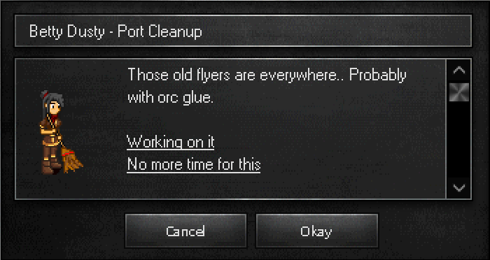 Betty Dusty explains she is trying to clean up the port and asks you to help by collecting Old Flyers.