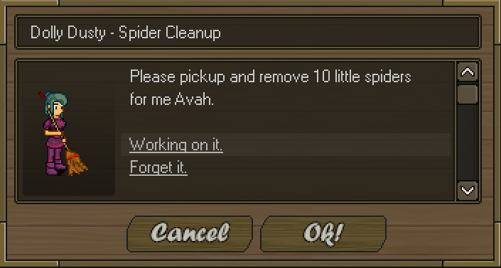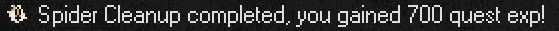 Once you have gathered 10 Little Spiders return to Dolly Dusty and claim your prize of 700 exp.