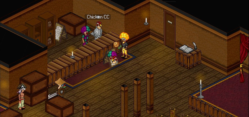 Stand in this location and wait for the Chicken CC to jump the counter and move north.